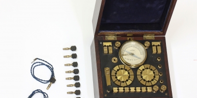 The galvanometer accompanying the clock is also entirely made by the scholar, and signed ALBERT HAUTE 1934, which seems to indicate that the scholar followed an extra specialisation course on the manufacture of instruments for one year. It is extremely rare to find a clock and a scientific instrument (and in this case also a winding key with initials) all bearing the same signature. Only one other example is known to us, that of André De Jonghe 1922 (on the clock) and 1923 (on the galvanometer).